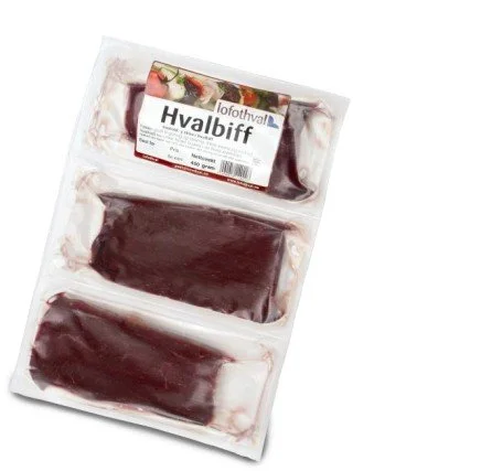 Fryst hvalbiff i lenke. 450g. Må tines før tilberedning.