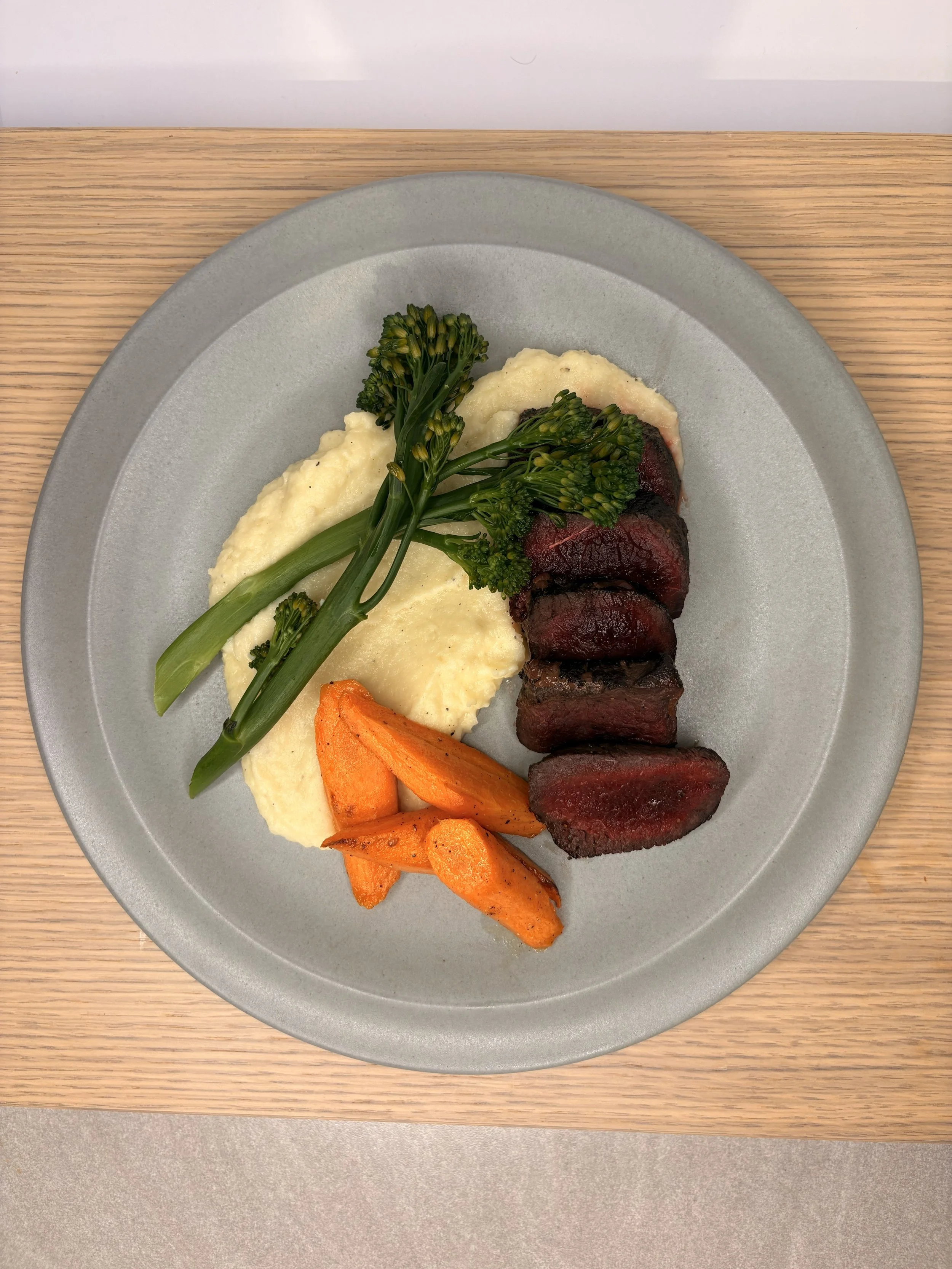 Denne smakfulle og næringsrike retten kombinerer saftig, mør hvalbiff med silkemyk sellerirotpuré, smørstekte gulrøtter og lettkokt brokkolini. En balansert og klassisk middag som er enkel å lage, og som du kan spise med god samvittighet.