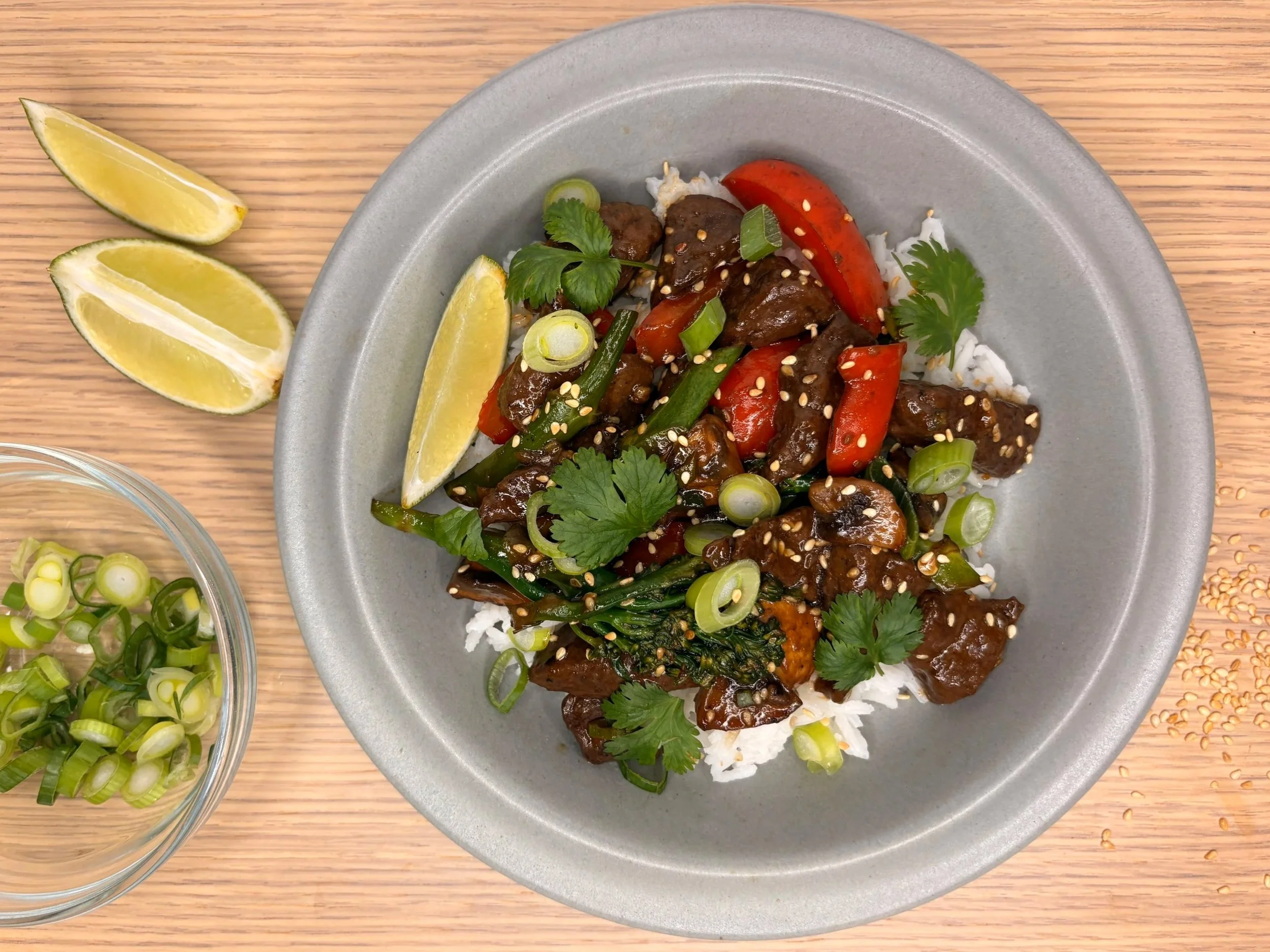 Denne retten er svært fleksibel og kan enkelt varieres med andre grønnsaker du har tilgjengelig, som sukkererter, gulrot eller kinakål. Juster mengden soya, lime og chilli etter smak.