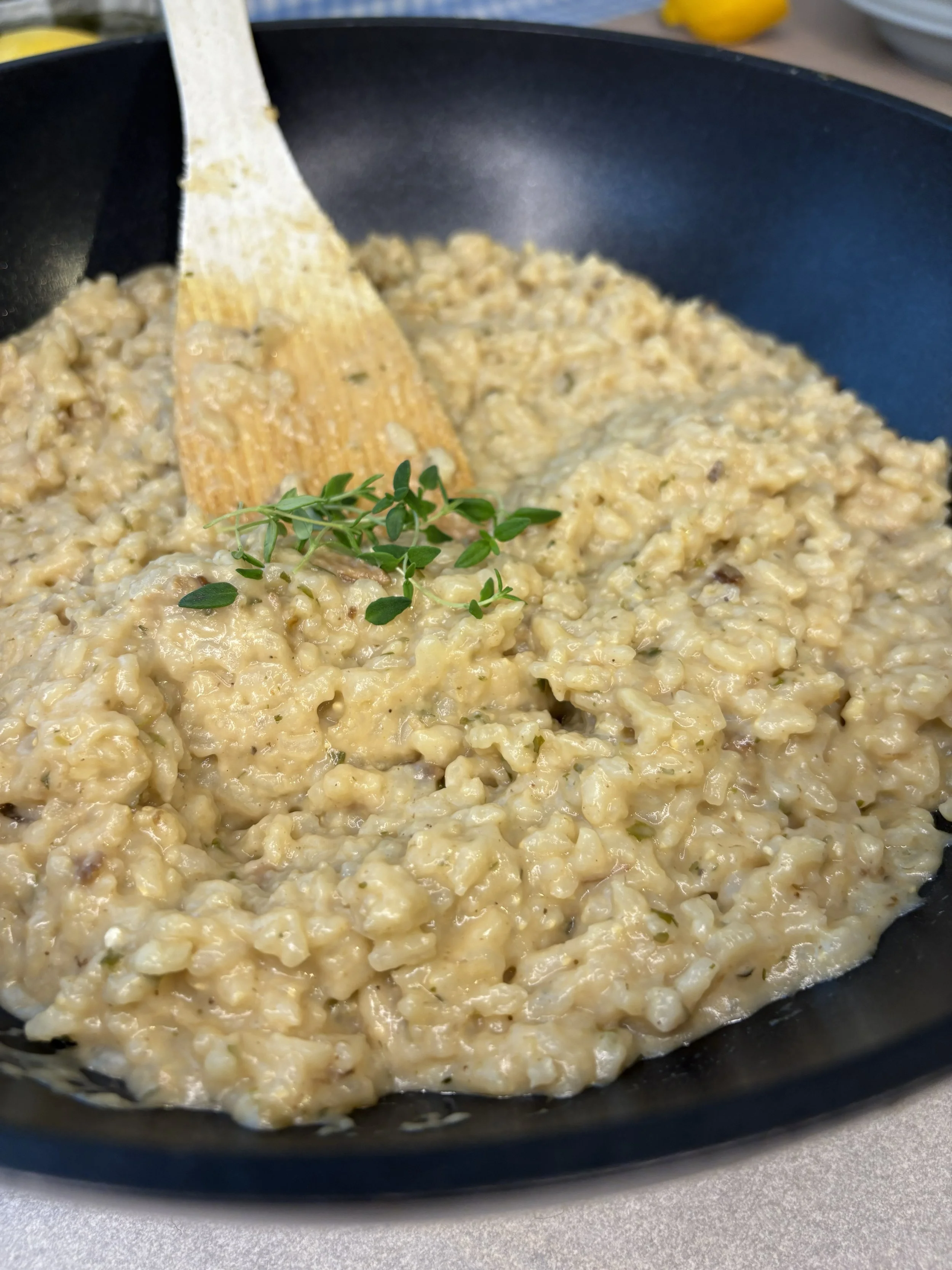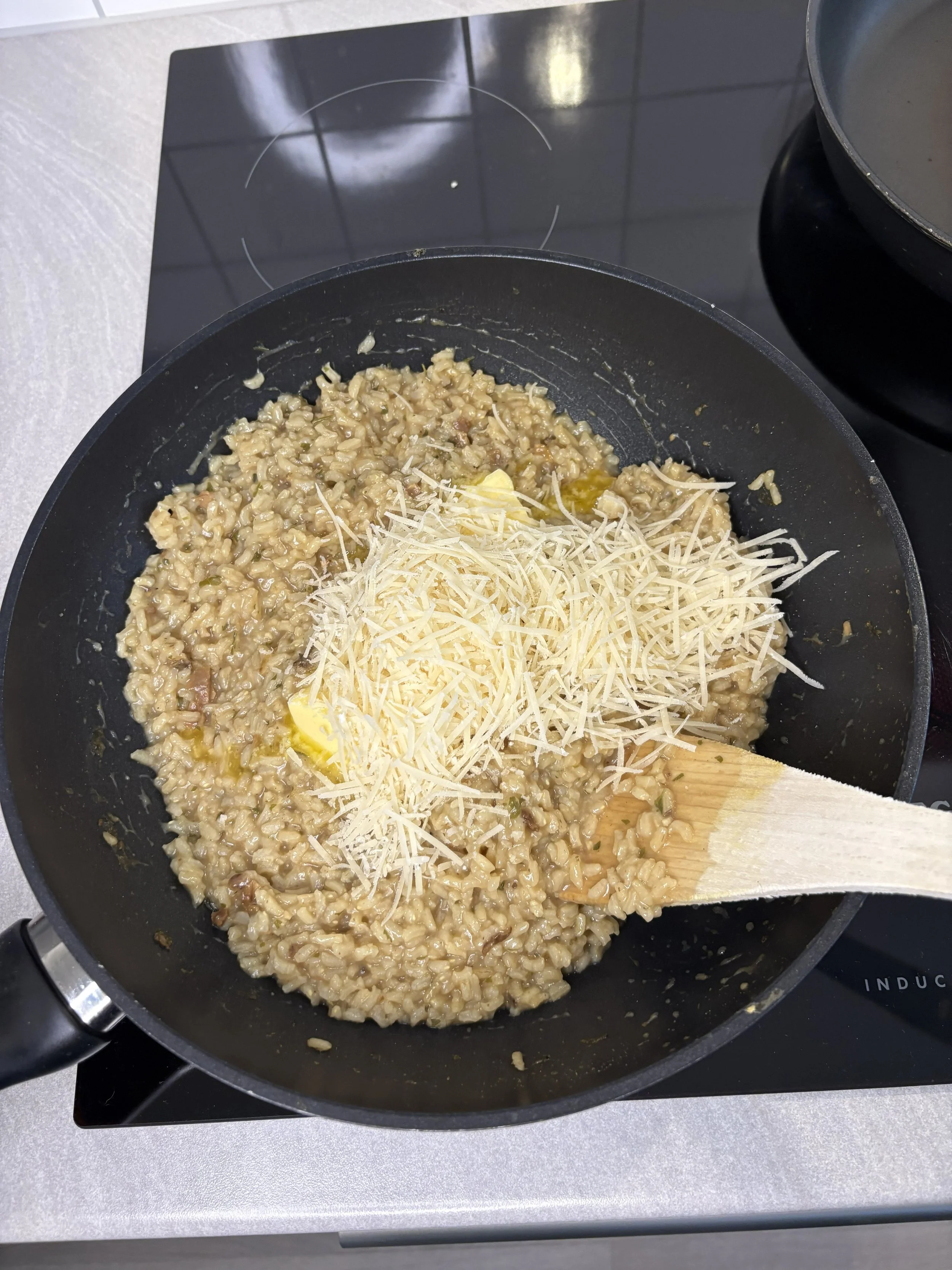 Start med risottoen: Tilbered risottoen etter anvisningen på pakken. Rør inn en klatt smør og en neve parmesan helt til slutt for ekstra fylde.